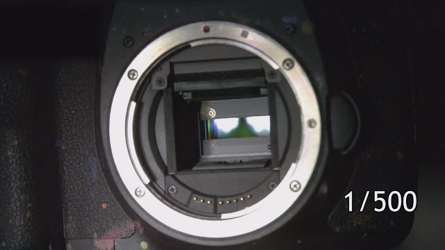 Enstantane perdesi objektifin ve aynanın arkasında yer alır.